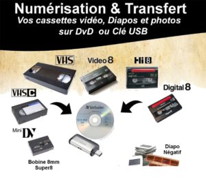 Tu disposes de vieux films super 8, de cassettes vidéo ou encore de diapositives et cela prend la poussière au fond d’une armoire ou à la cave.